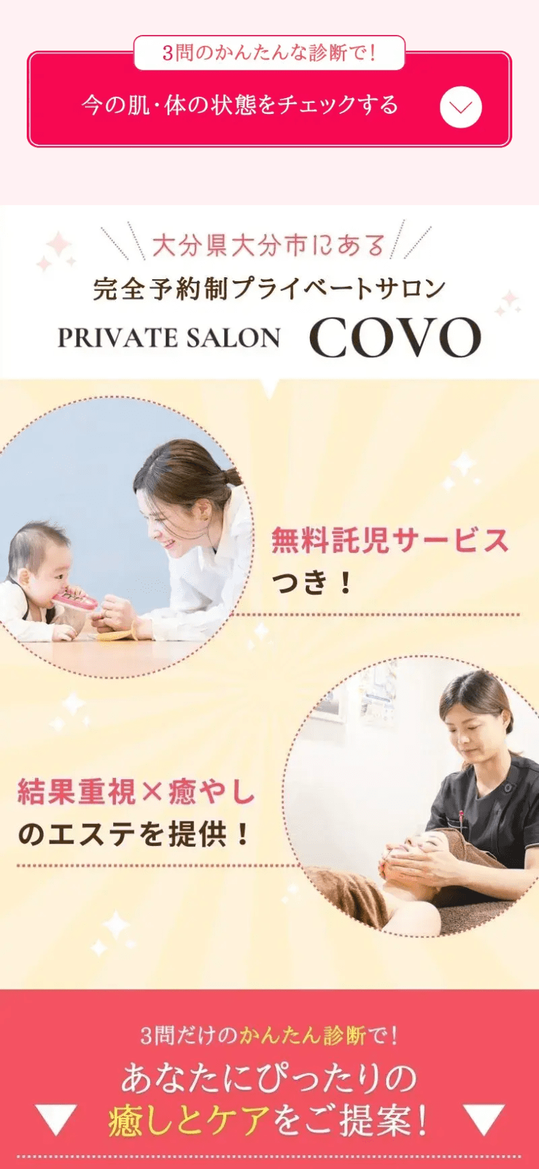 大分県別府市を中心に活動されている完全予約制プライベートサロン、COVO様のLPとインスタ広告。
